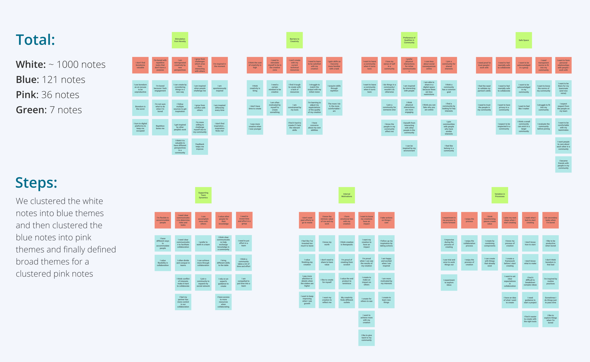 Understand current user behavior, preferences, pain-points, and needs in the space of creativity, collaboration, community, inspiration, and boredom